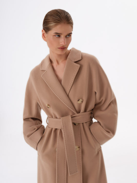 Double-breasted wide-sleeved cashmere and wool coat