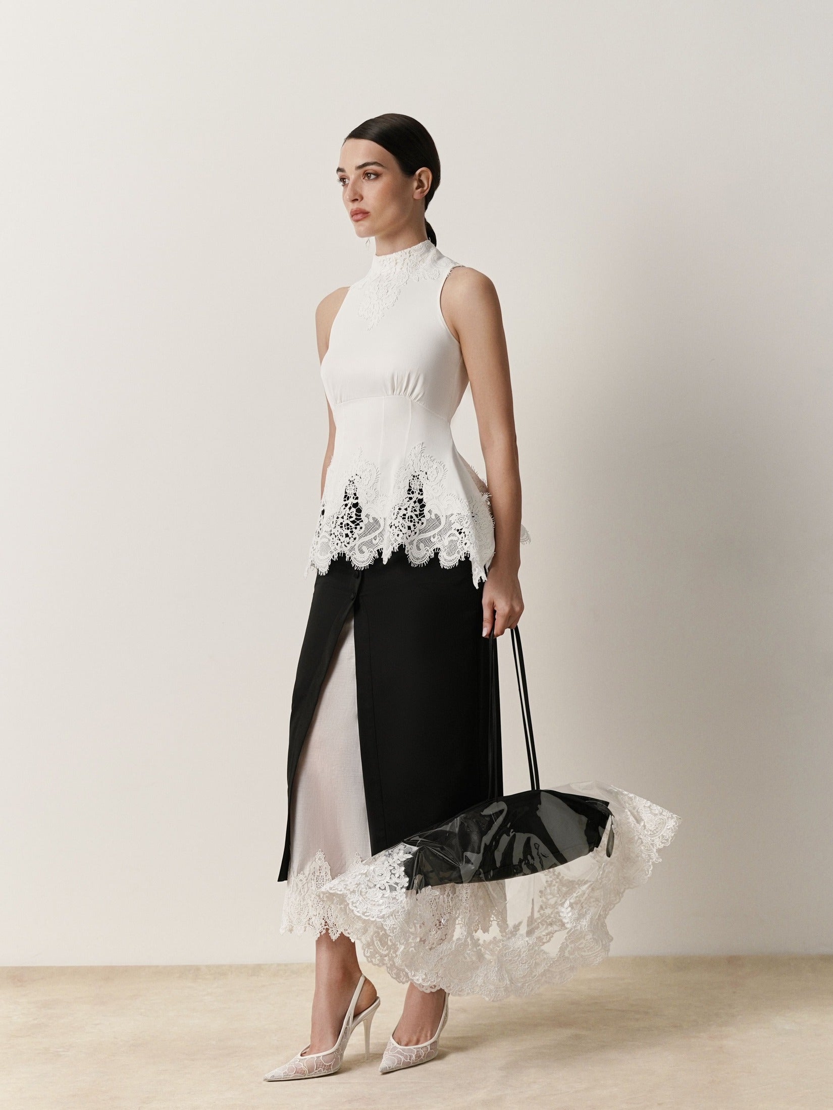 Protect your investment with understated elegance. This transparent polymer bag cover shields against rain and moisture while serving as a refined accessory in its own right. Handcrafted with meticulous attention to detail, it features delicate Italian lace trim that elevates everyday functionality into a statement piece. The durable, see-through design allows your bag's beauty to remain visible whilst maintaining complete protection. Part of our SIGNATURE couture collection—where heritage craftsmanship meets contemporary style.