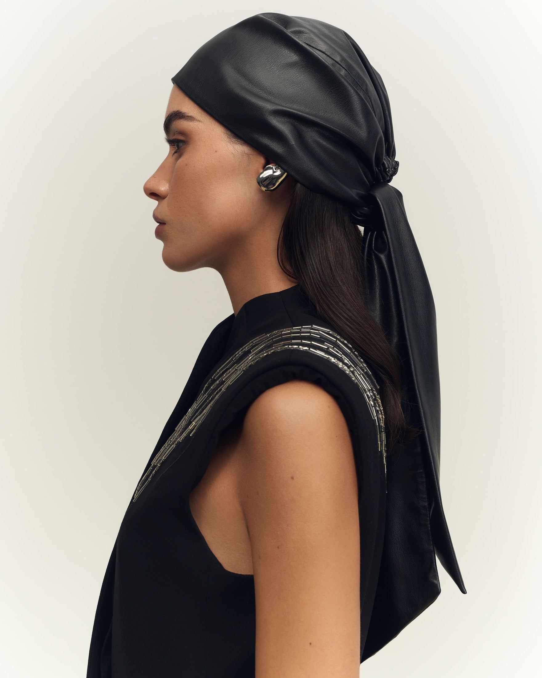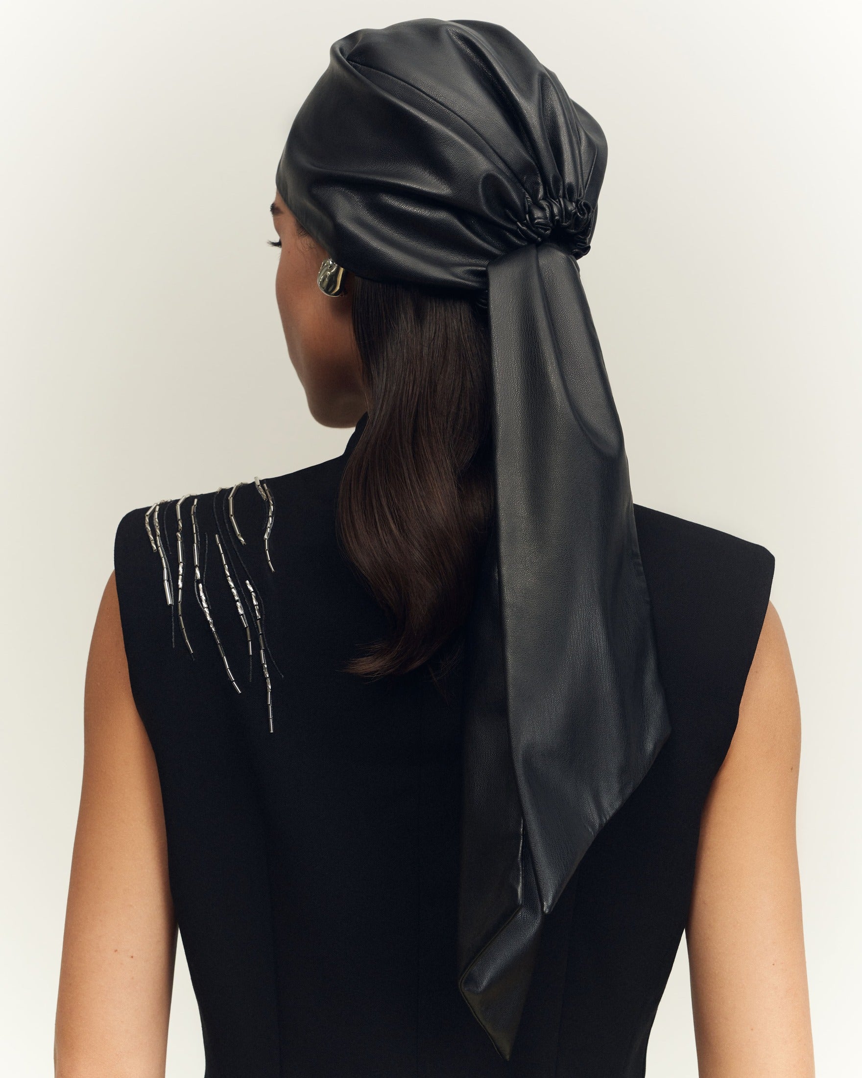 Step up your style game with our limited edition leather bandana. Crafted from fine-grained leather, the fabric treatment gives it a unique texture and elegant drape. Add a touch of sophistication to your autumn look with this must-have accessory.