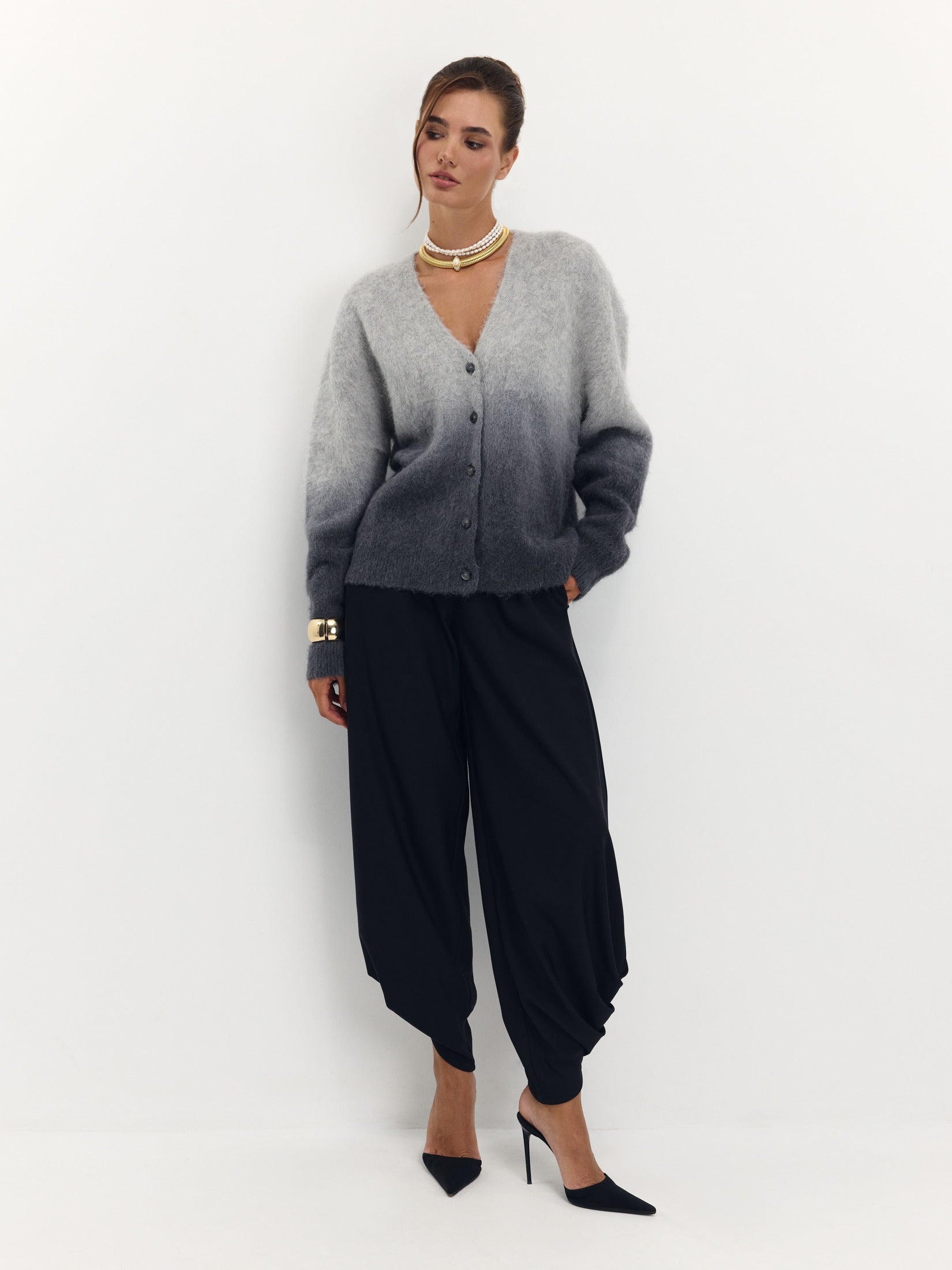 Introducing the Notting Hill Cardigan, a free cut cardigan made of alpaca wool that undergoes a unique three-stage creation process for a one-of-a-kind color and texture. With a dropped shoulder line, button closure, and V-neckline, this cardigan combines style and comfort effortlessly.