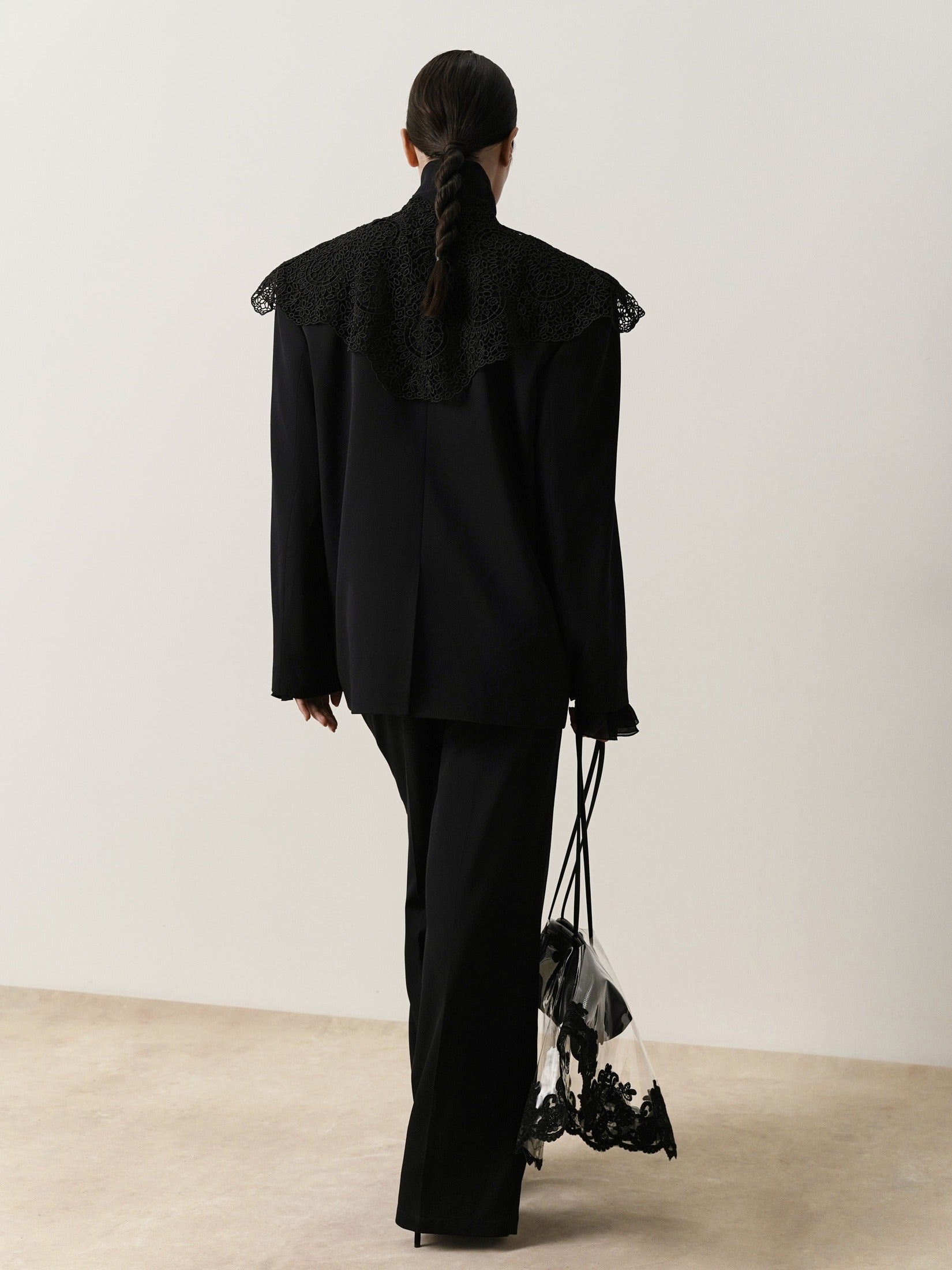 Protect your investment with understated elegance. This transparent polymer bag cover shields against rain and moisture while serving as a refined accessory in its own right. Handcrafted with meticulous attention to detail, it features delicate Italian lace trim that elevates everyday functionality into a statement piece. The durable, see-through design allows your bag's beauty to remain visible whilst maintaining complete protection. Part of our SIGNATURE couture collection—where heritage craftsmanship meets contemporary style.
